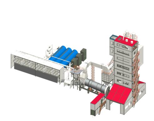 设备主楼可以采用全外包封闭或局部外包封闭,具有强制除尘 和处沥青烟功能。冷料系统采用框架半封闭系统,灰尘采用强制除尘系统。沥青烟采用冷却、过滤、水循环系统进行清除无害处理。